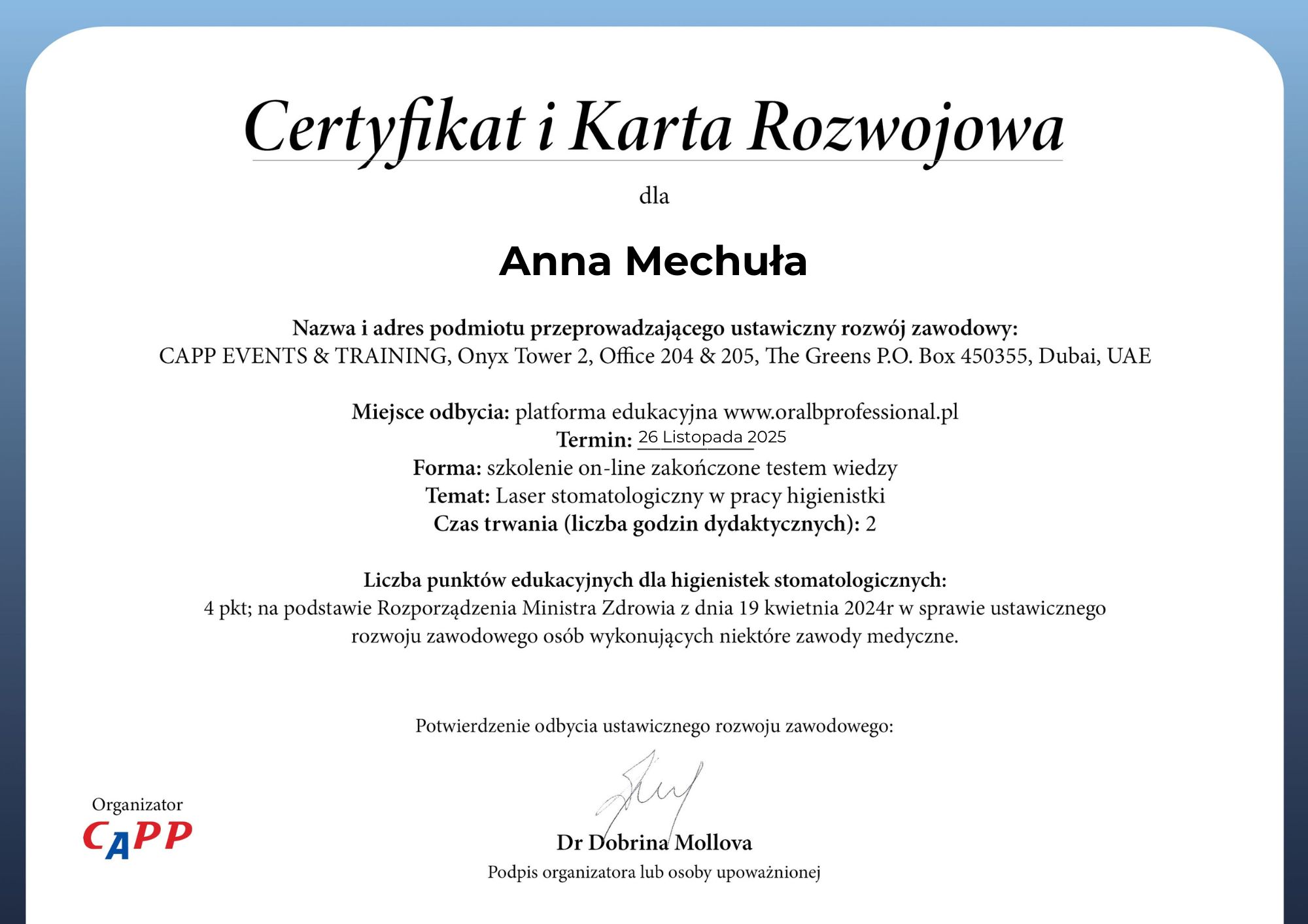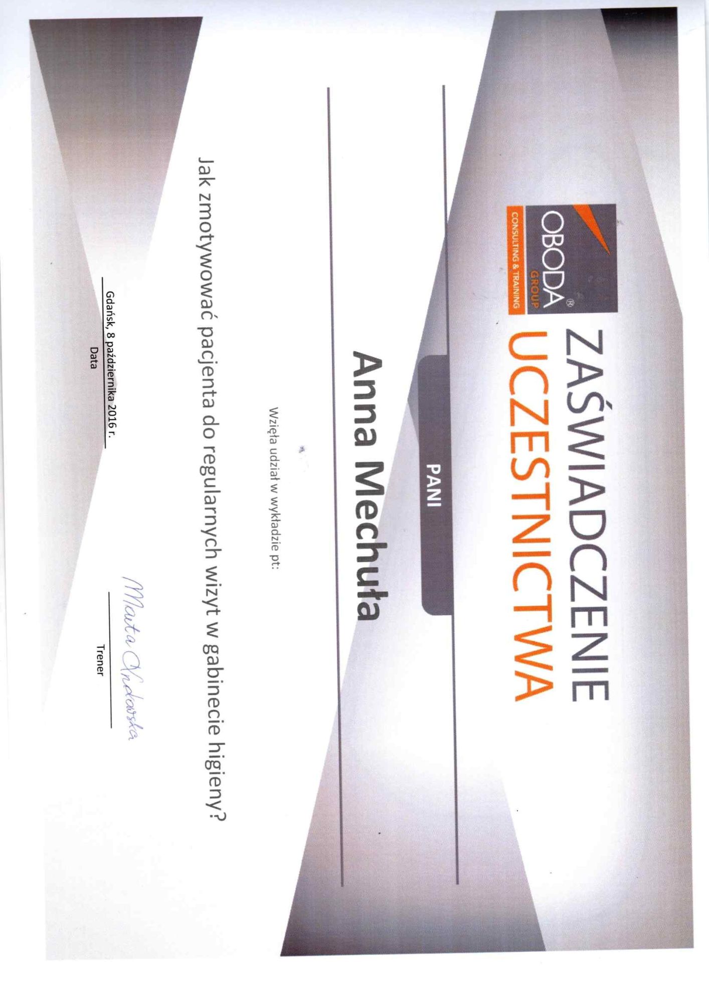 Pani Ania jest dyplomowaną asystentką stomatologiczną