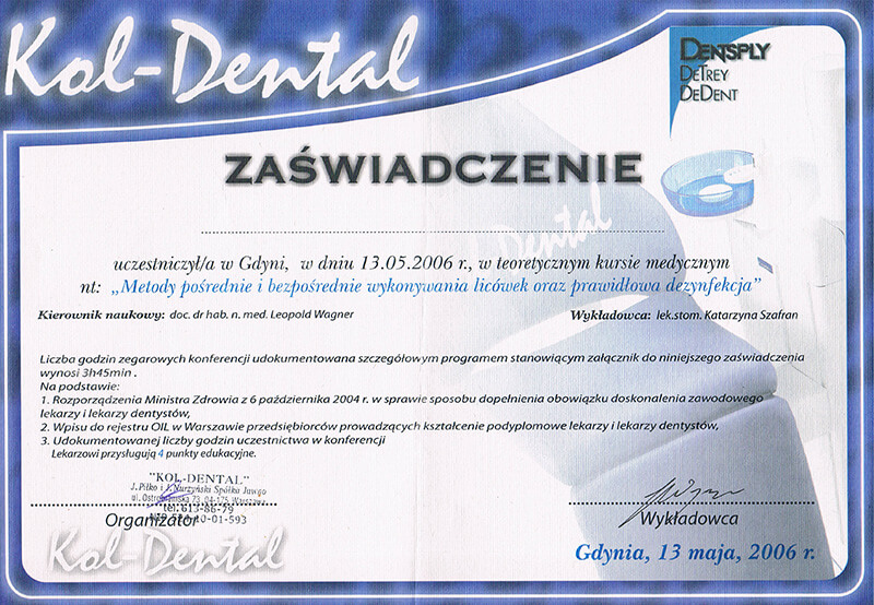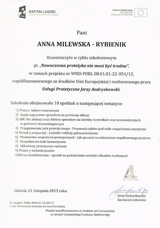Aktywnie uczestniczy w kursach, warsztatach oraz szkoleniach podnosząc swoje kwalifikacje zawodowe.