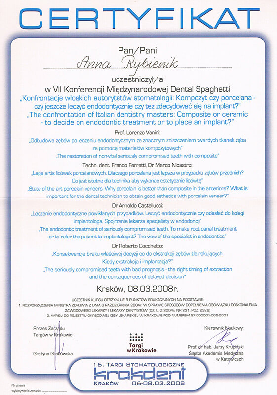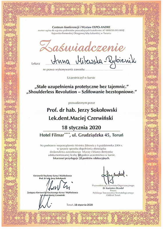 Zawodowa pasje wyraża kompleksowym podejściem do pacjenta, dzięki czemu wyniki leczenia są trwałe i satysfakcjonujące.