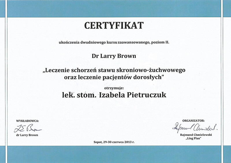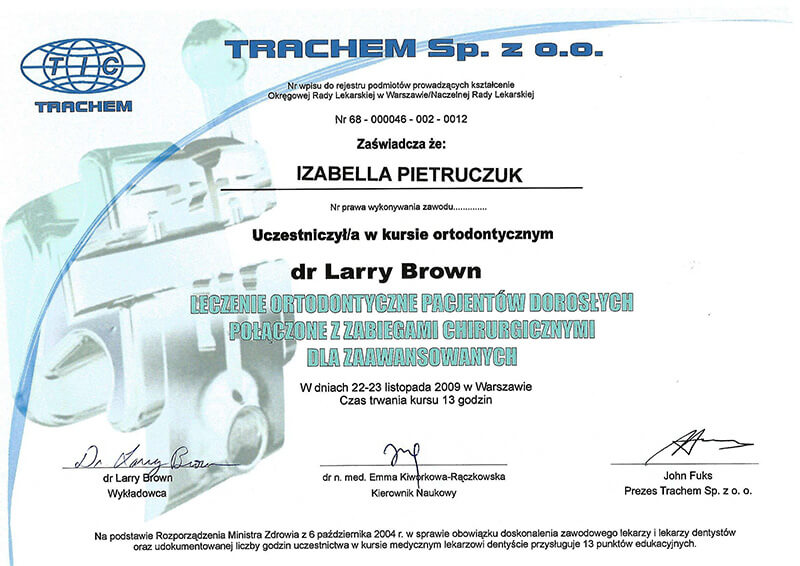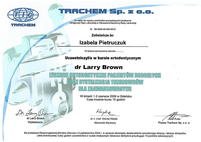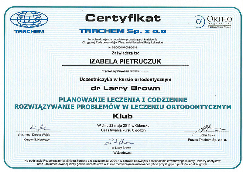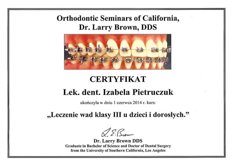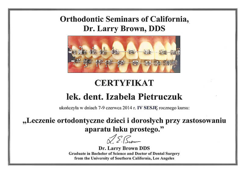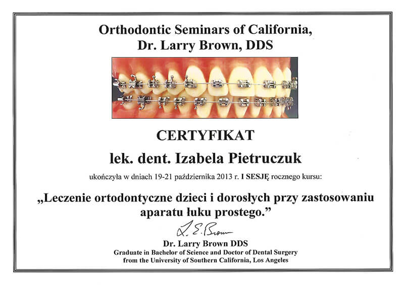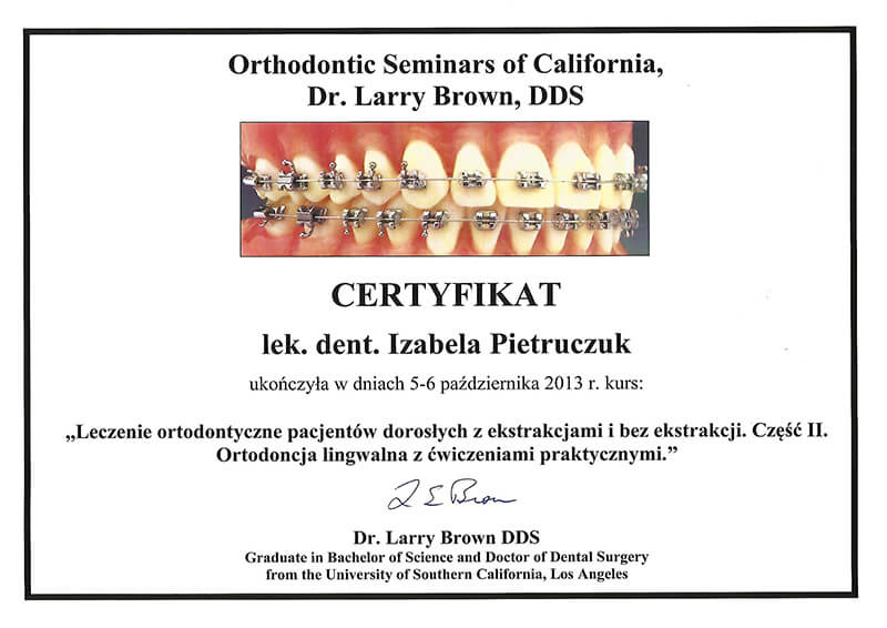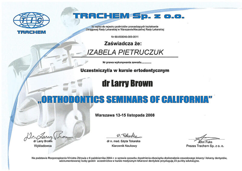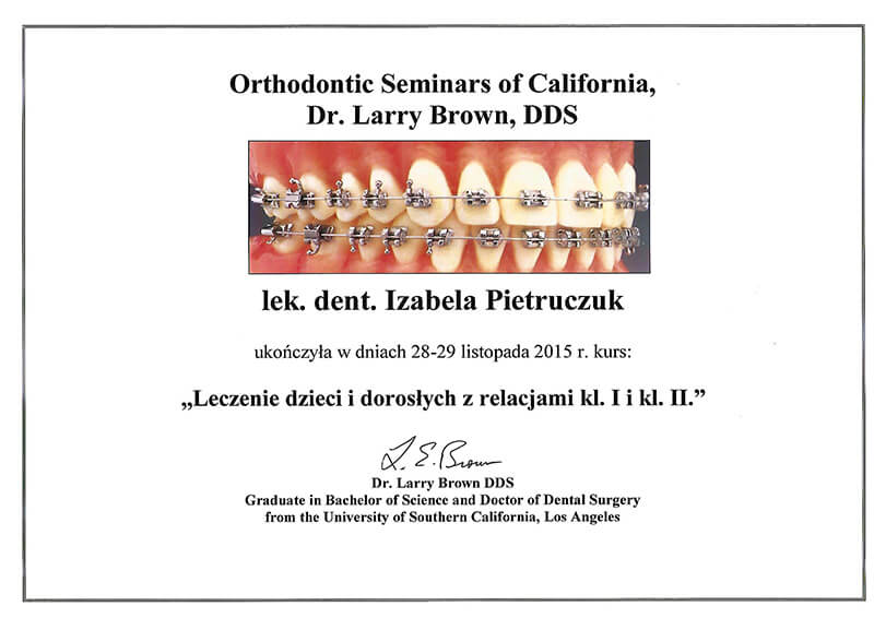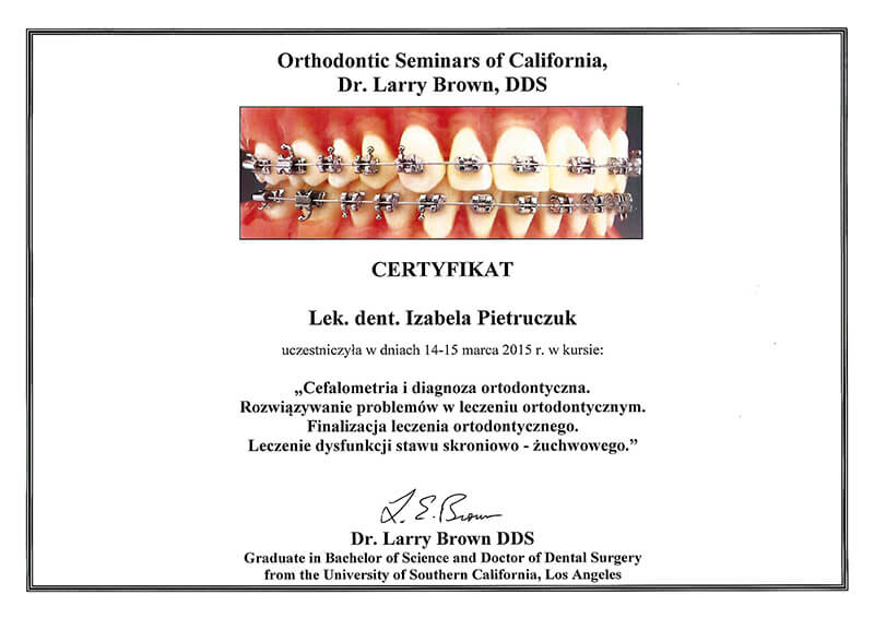 Poza pracą kliniczną, od 2010 roku jestem członkiem zespołu organizującego cykle szkoleń z ortodoncji dla ortodontów i dentystów ogólnych Dr Larry Brown Orthodontic Seminars of California.