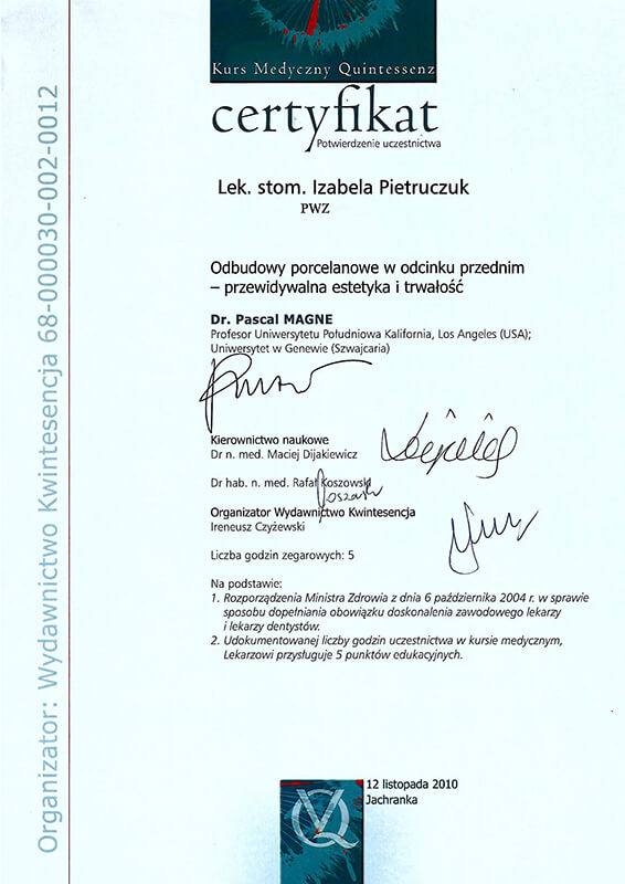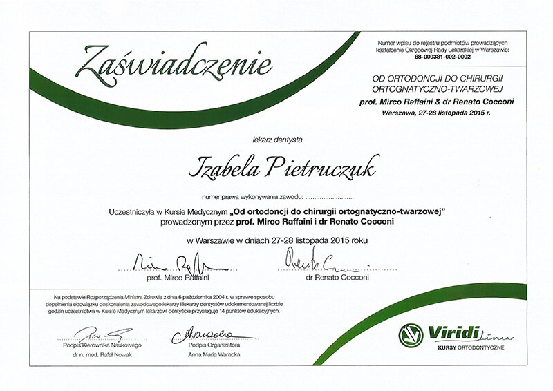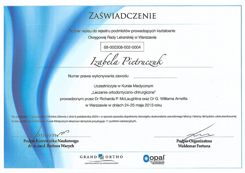 W wyniku uczęszczania na wiele ciekawych kursów ortodontycznych i bycia w czołówce edukacji ortodontycznej jako wykładowca i konsultant, rozwijałam swoje umiejętności jako lekarz ortodonta nieustannie doskonaląc wyniki swojej pracy.